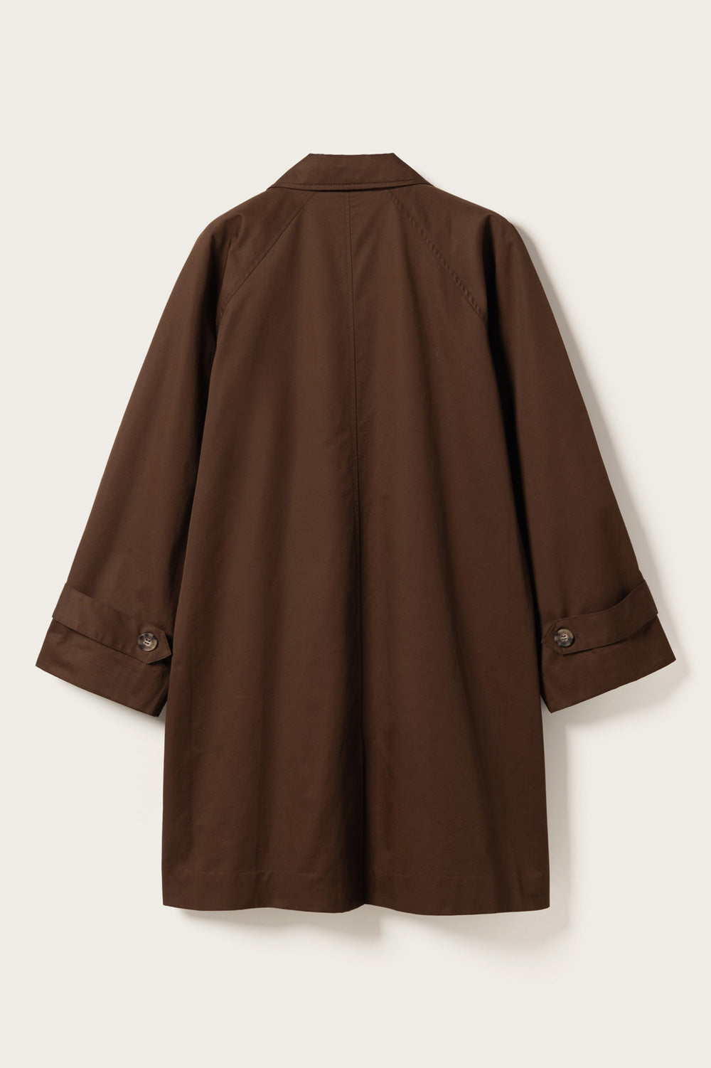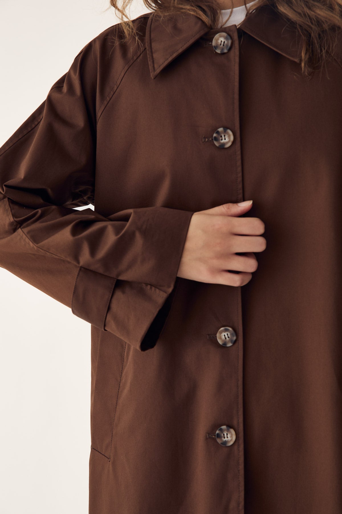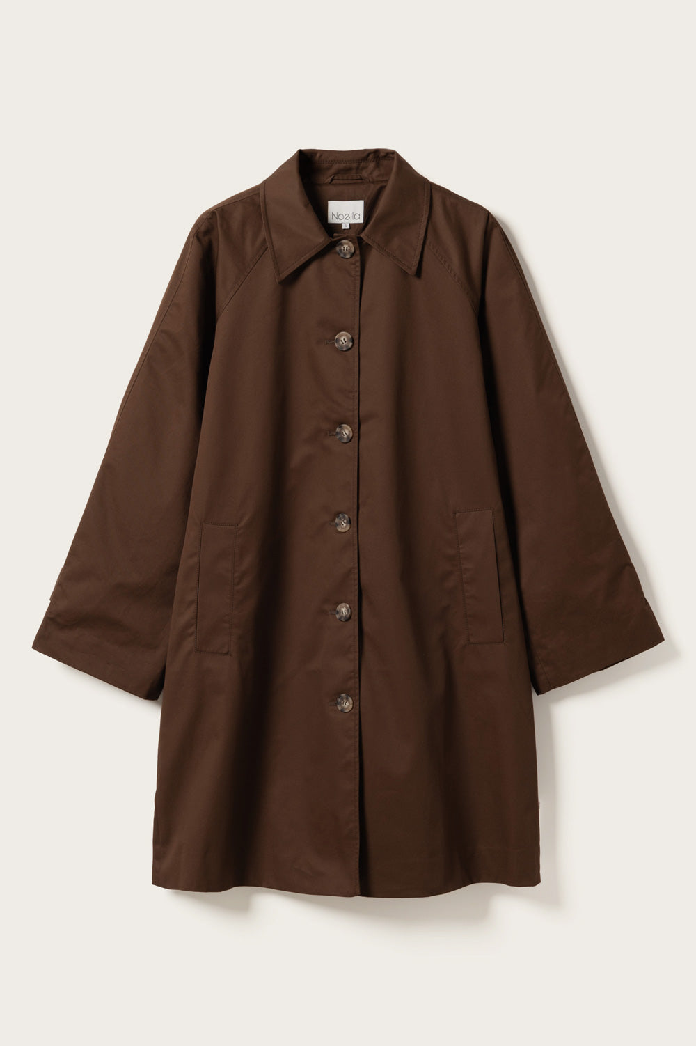 Lili Coat is a classic trench coat in 100 cotton with a collar, large buttons, and button details on the sleeves. Lili Coat features a mid length and a loose fit.