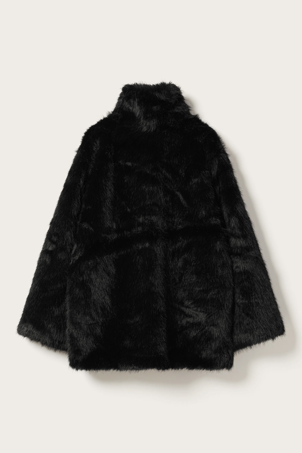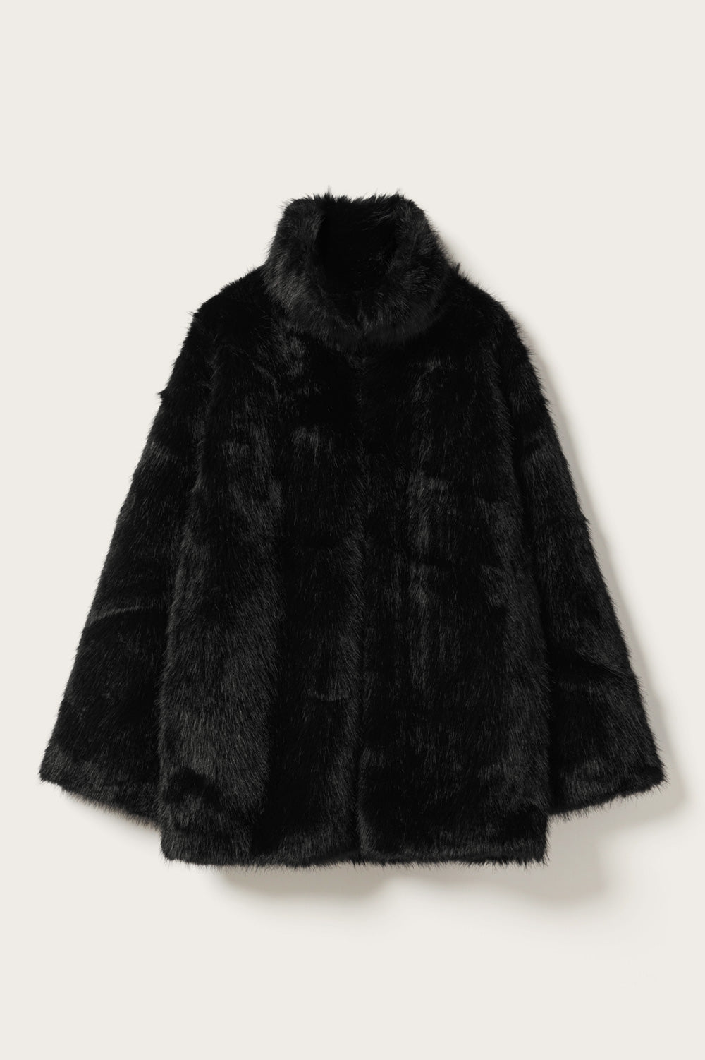 Lizz Jacket is a faux fur jacket with a high neckline that can also be styled as a collar. The jacket has a mid length and a loose fit.
