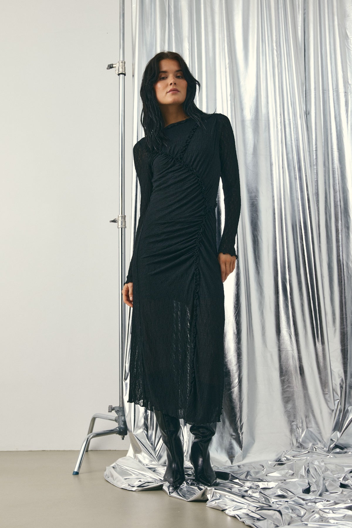 Loma Dress is a long dress featuring a defined cutline and ruched details at the front to accentuate the silhouette. The perfect dress for special occasions.
